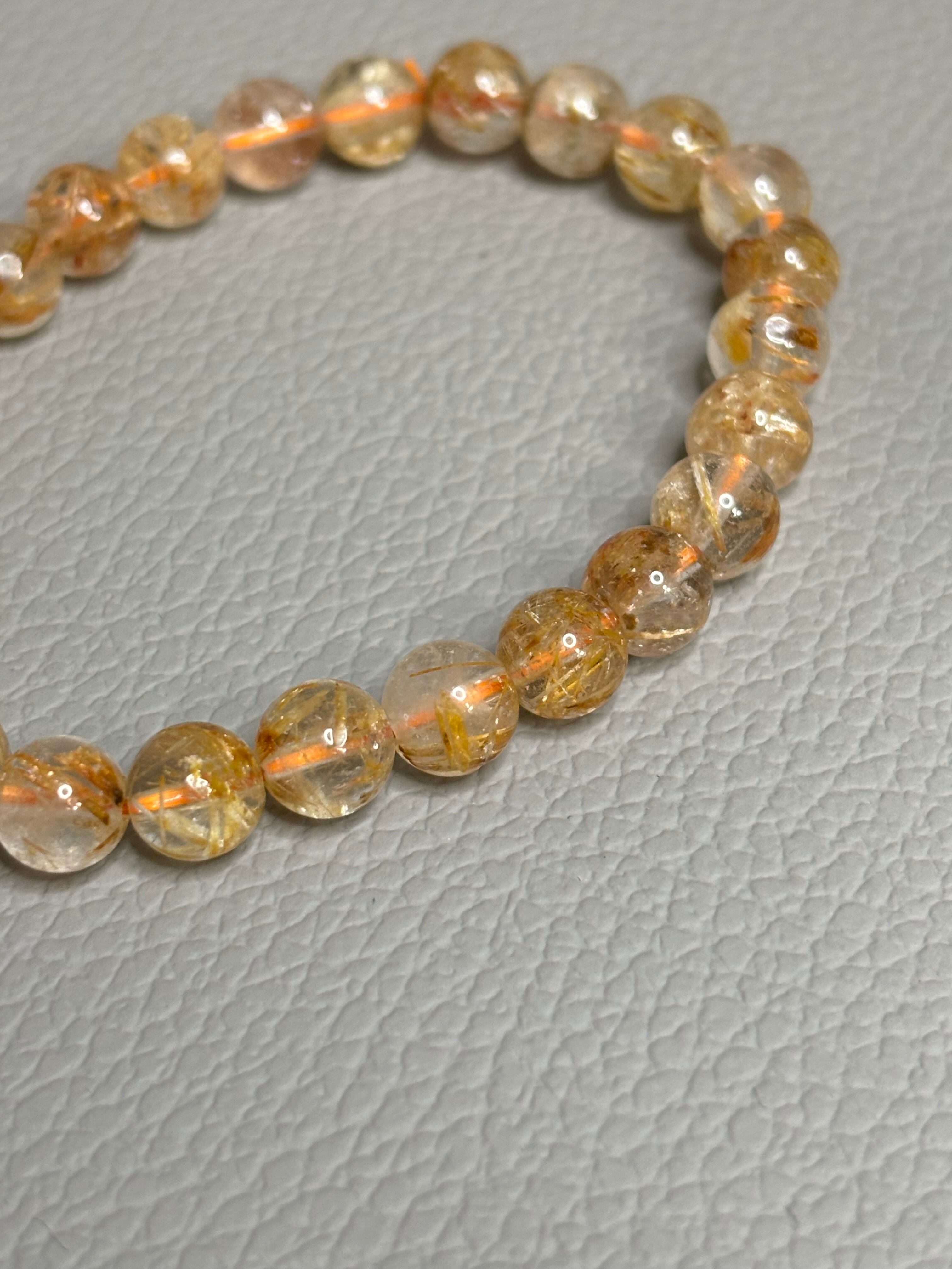 ザギマウンテンクォーツ(オレンジ)8.5mmは、希少価値の高いパワーストーンブレスレットです。オレンジの美しい色合いが魅力であり、その光沢感はまるで太陽の輝きを感じさせます。このブレスレットは、身に着けるだけでポジティブなエネルギーを引き寄せると言われています。