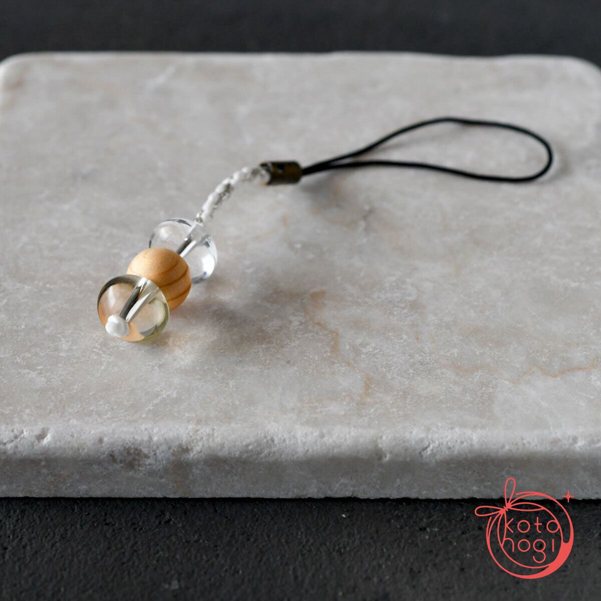 浄化と魔除けのお守り ストラップ「玉くし」* 天然石 水晶 レモンクォーツ 吉野槙 パワーストーン 癒し