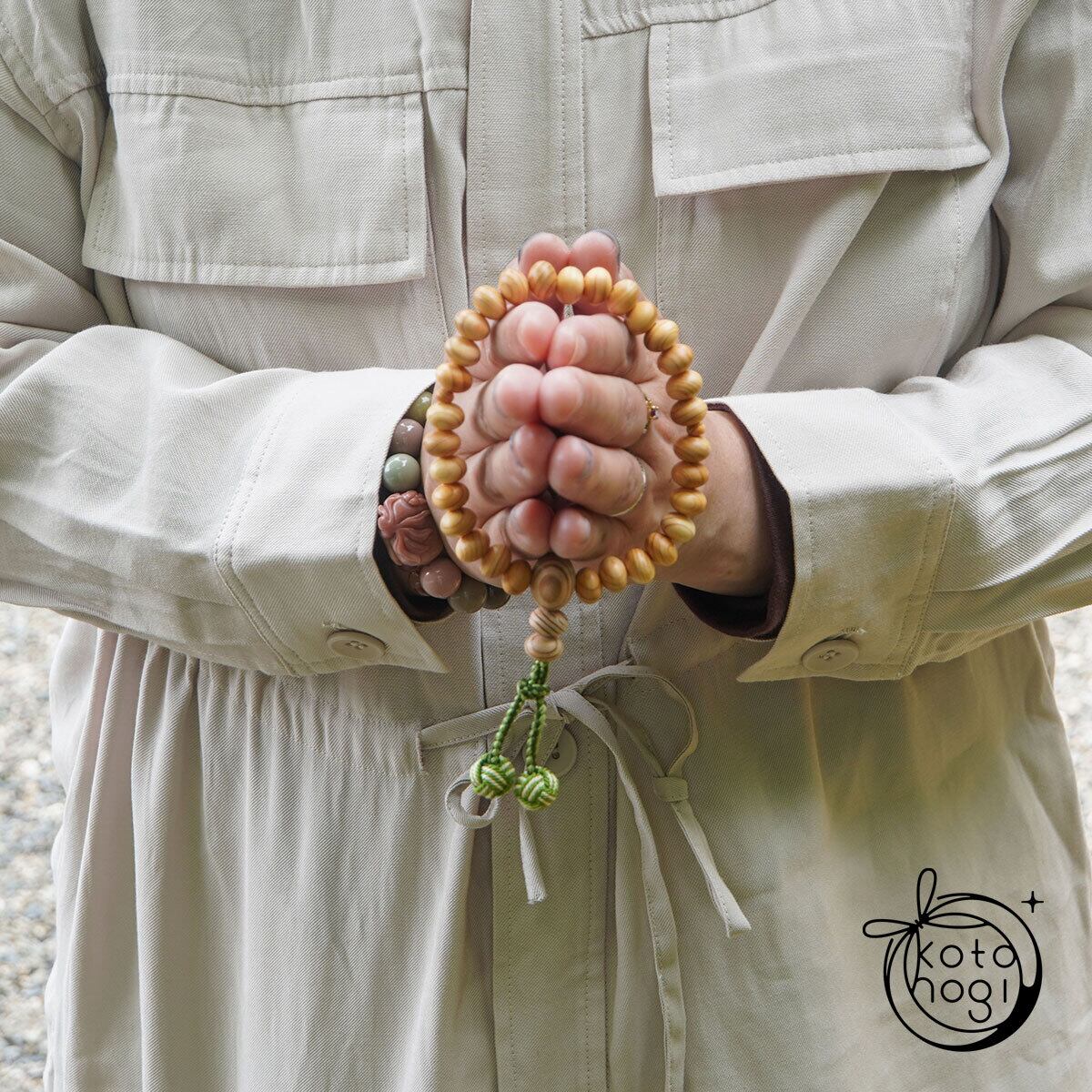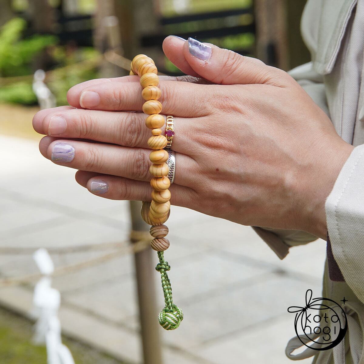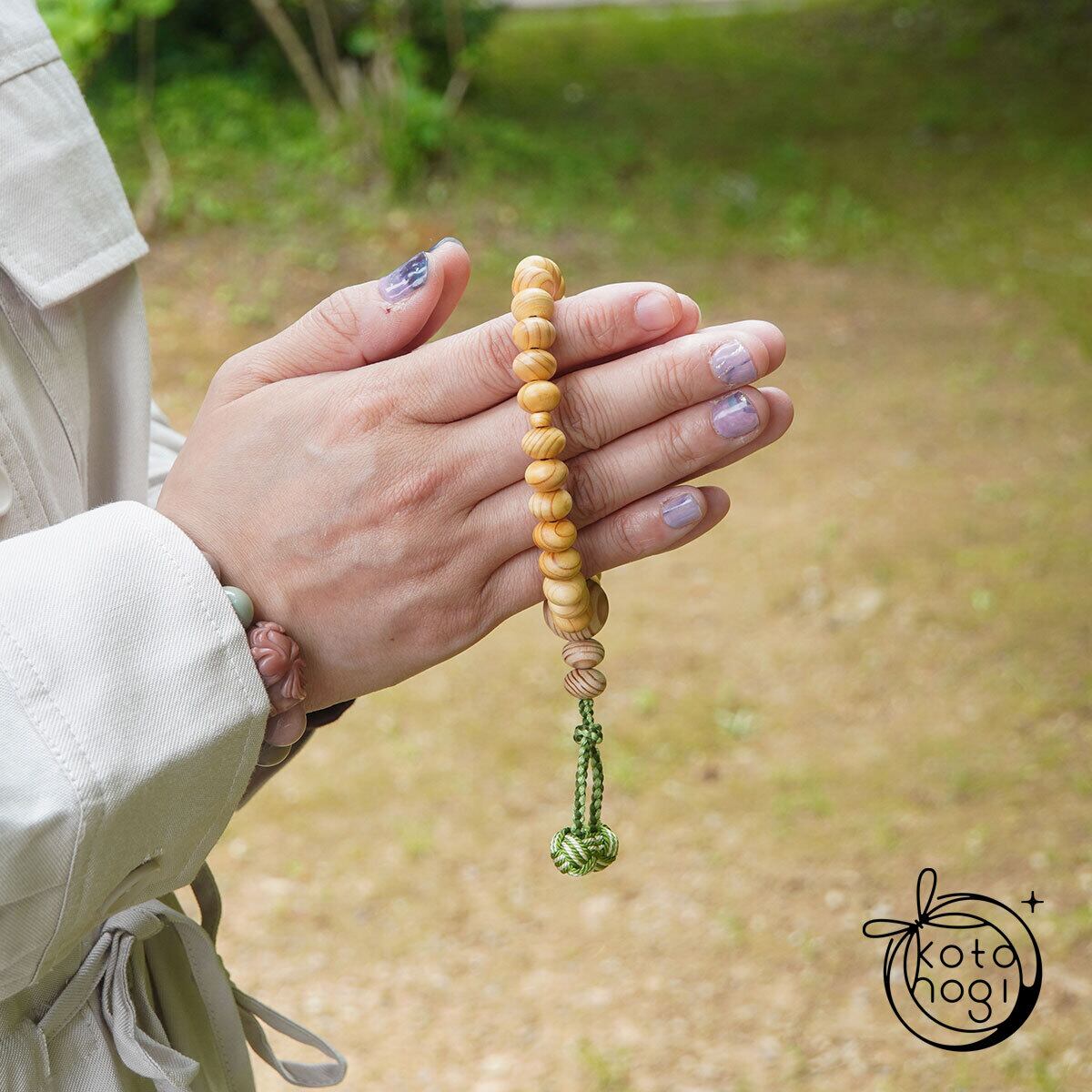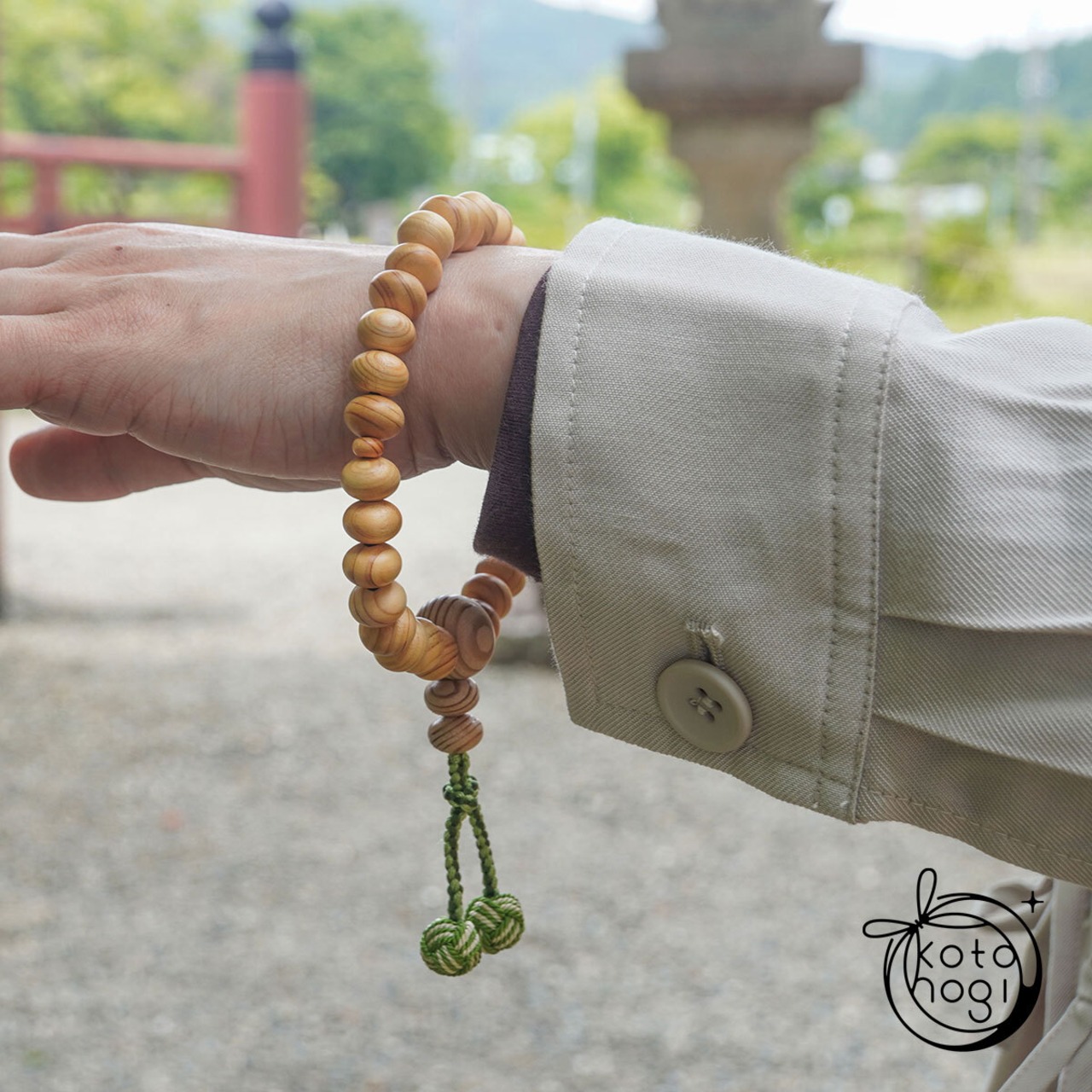 檜木玉、槐木珠で仕立てたお守り数珠「ひとえ」です。