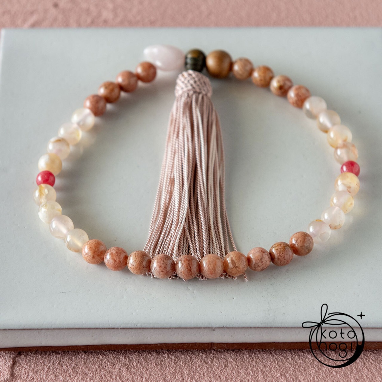 天然石のお守り数珠「ひとえ」春爛漫 桜瑪瑙 ロードナイト ローズクォーツ 檀香樹【開運】