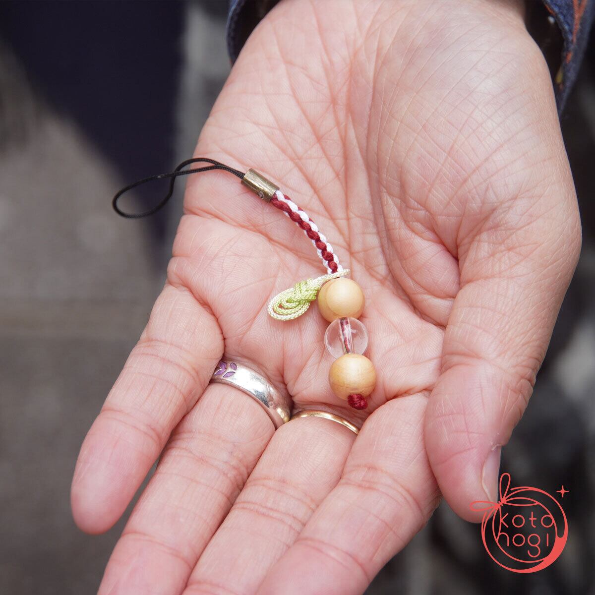 魔除け・邪気除け・浄化のお守りストラップ「玉くし」 高野山壇上伽藍中門檜 明星