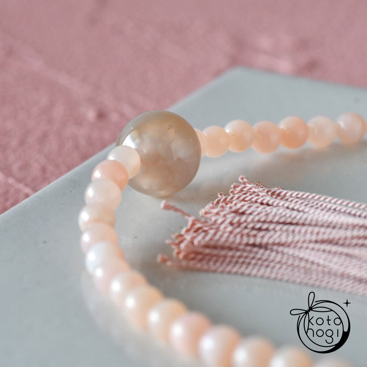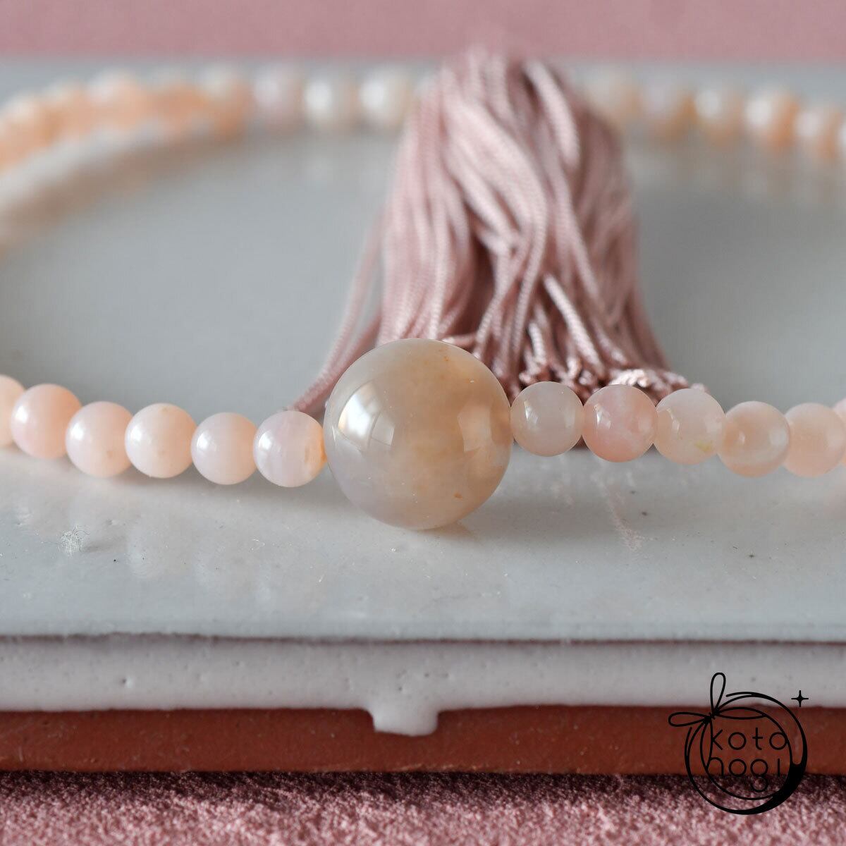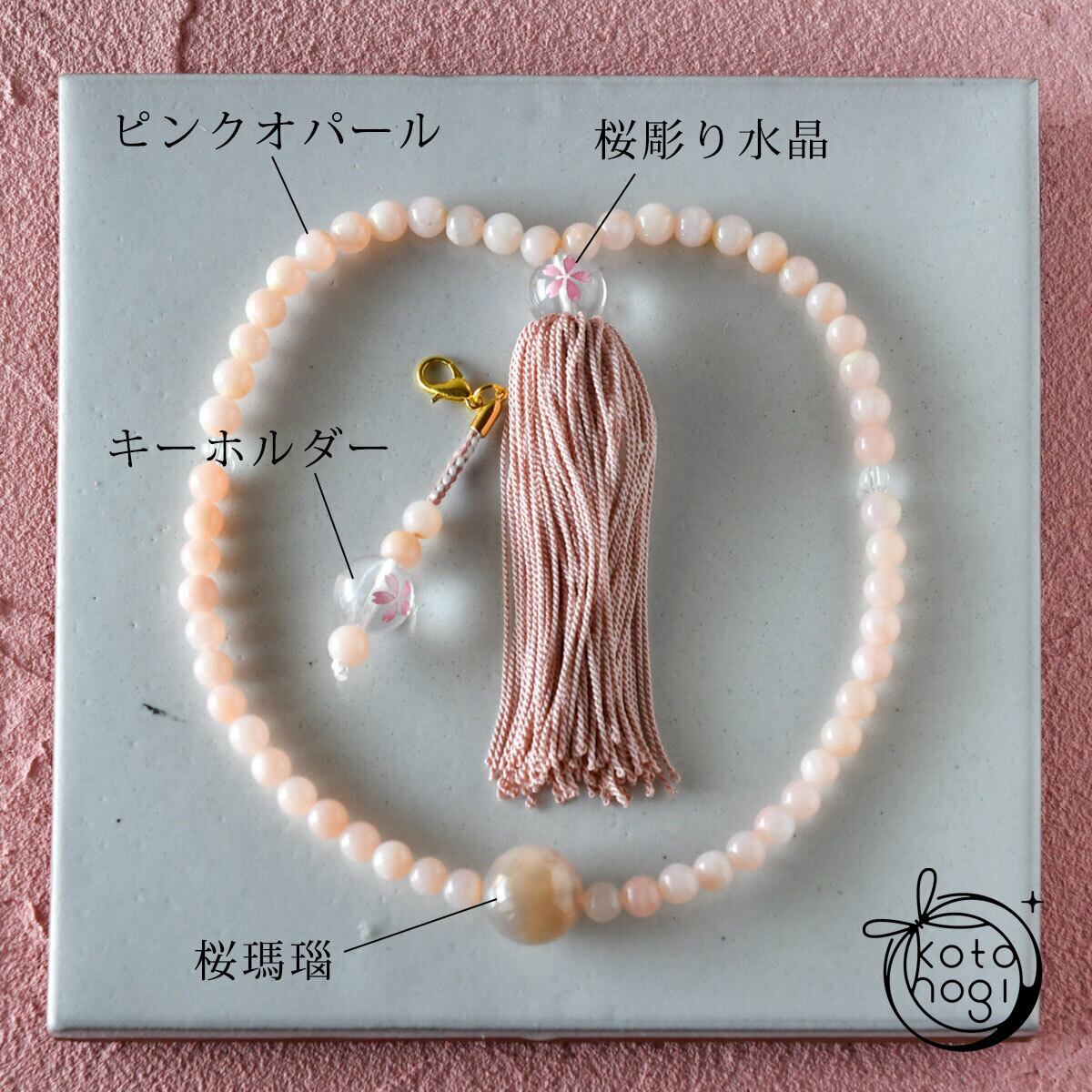 天然石の2wayお守り数珠「ふたえ」ピンクオパール 桜瑪瑙 桜彫り水晶 略式数珠【女子力・魅力アップ・癒し】