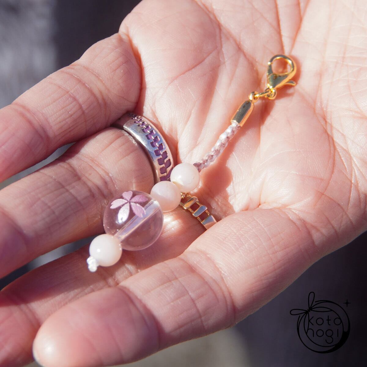 同じピンクオパールと桜彫り水晶でつくったキーホルダーもセットでお付けします。