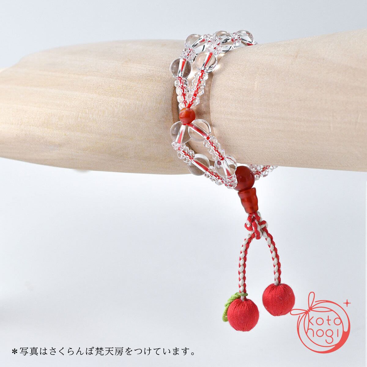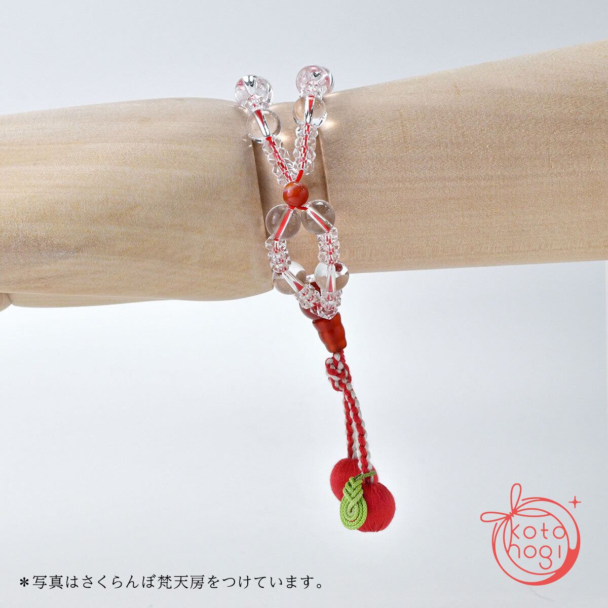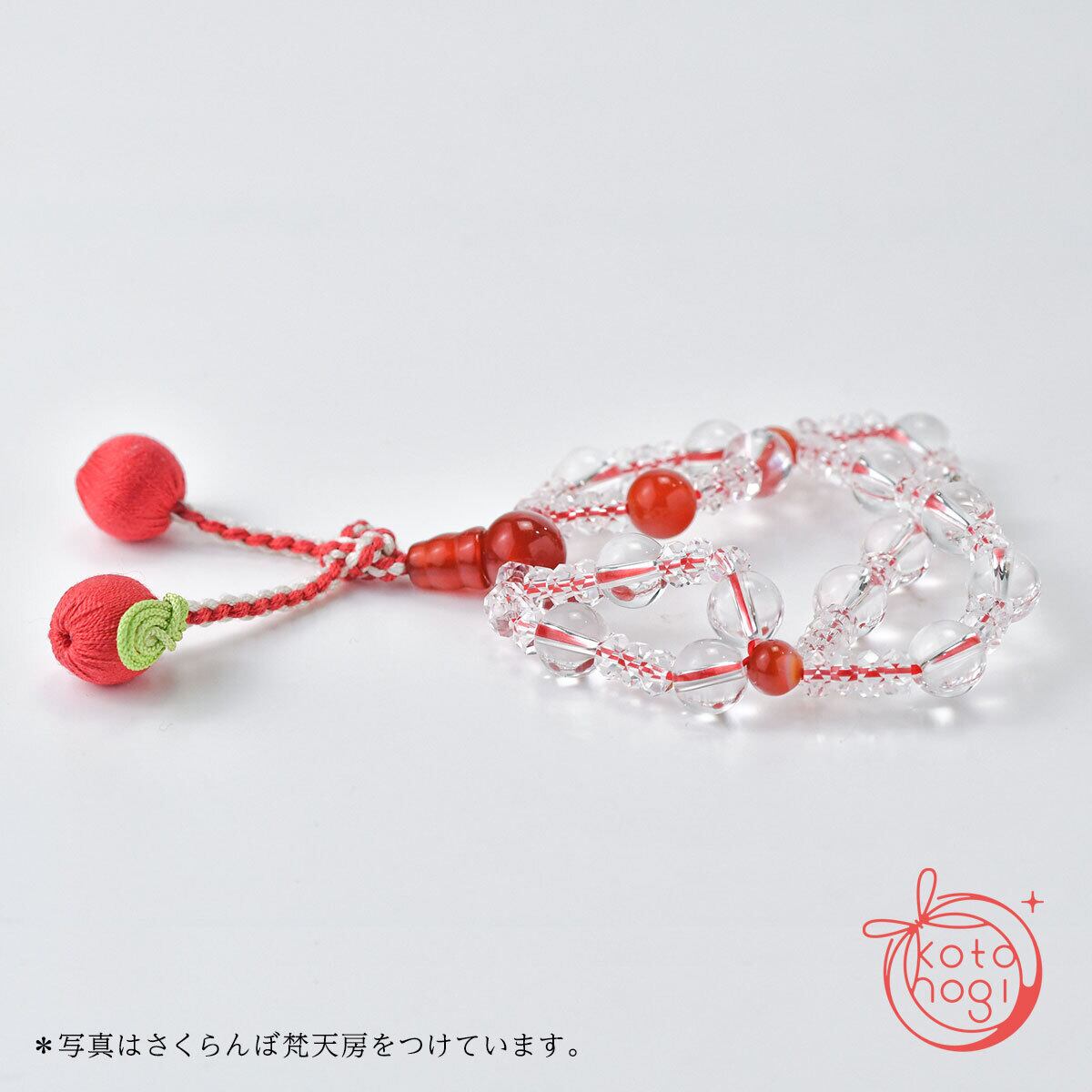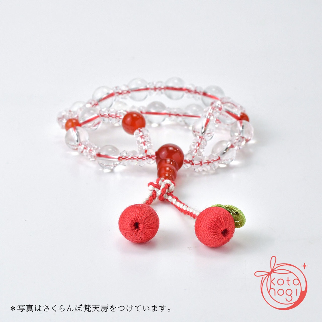 水晶と赤天眼石、赤瑪瑙で組んだお守りブレスレット「祝り」です。