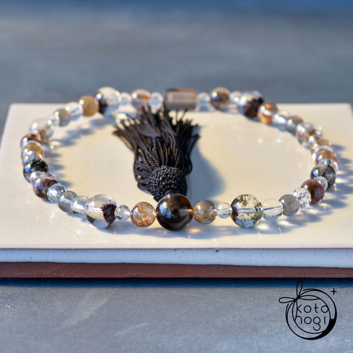 天然石の2wayお守り数珠「ふたえ-紡-」ガウリィシャンカール ゴールドルチルクォーツ ブラウンルチル ガーデンクォーツ スモーキークォーツ 略式念珠
