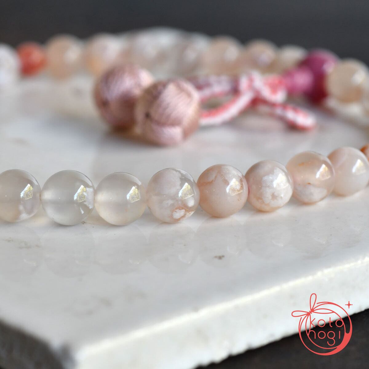 天然石の2wayお守り数珠「ふたえ」桜瑪瑙 略式数珠【金運アップ・仕事運アップ】
