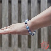 バイカラーフローライト、インペリアルソーダーライト、アイオライト、ガネーシュヒマール、水晶で仕立てたお守りブレスレット「祝り」です。